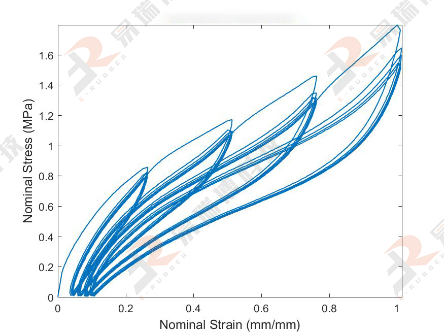 通过对试样进行多次循环加-卸载,记录首次与后续循环的应力响应差异,获得应力软化曲线。这些数据用于拟合Mullins模型参数,对模拟产品初次装配刚度衰减、过载性能变化及准确生热分析不可或缺。