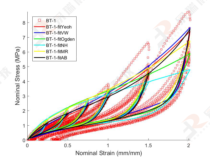 对于需要模拟软化效应的工况,我们提供耦合Ogden-Roxburgh等Mullins效应模型的综合本构拟合服务,使您的仿真模型不仅能反映稳态行为,更能准确模拟初次使用的历史依赖特性。