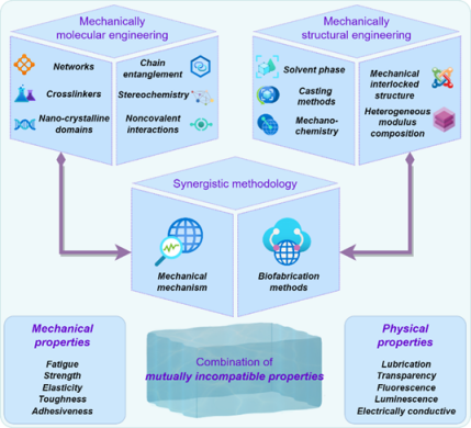 正如刘维民院士团队在《Chemical Reviews》关于“聚合物凝胶力学调控”的重磅综述中所指出的,前沿的解决思路是 “协同方法学”(synergistic methodology)——即协同运用分子工程结构工程策略,以达成强度、韧性、弹性、疲劳等多重力学属性的最佳权衡。